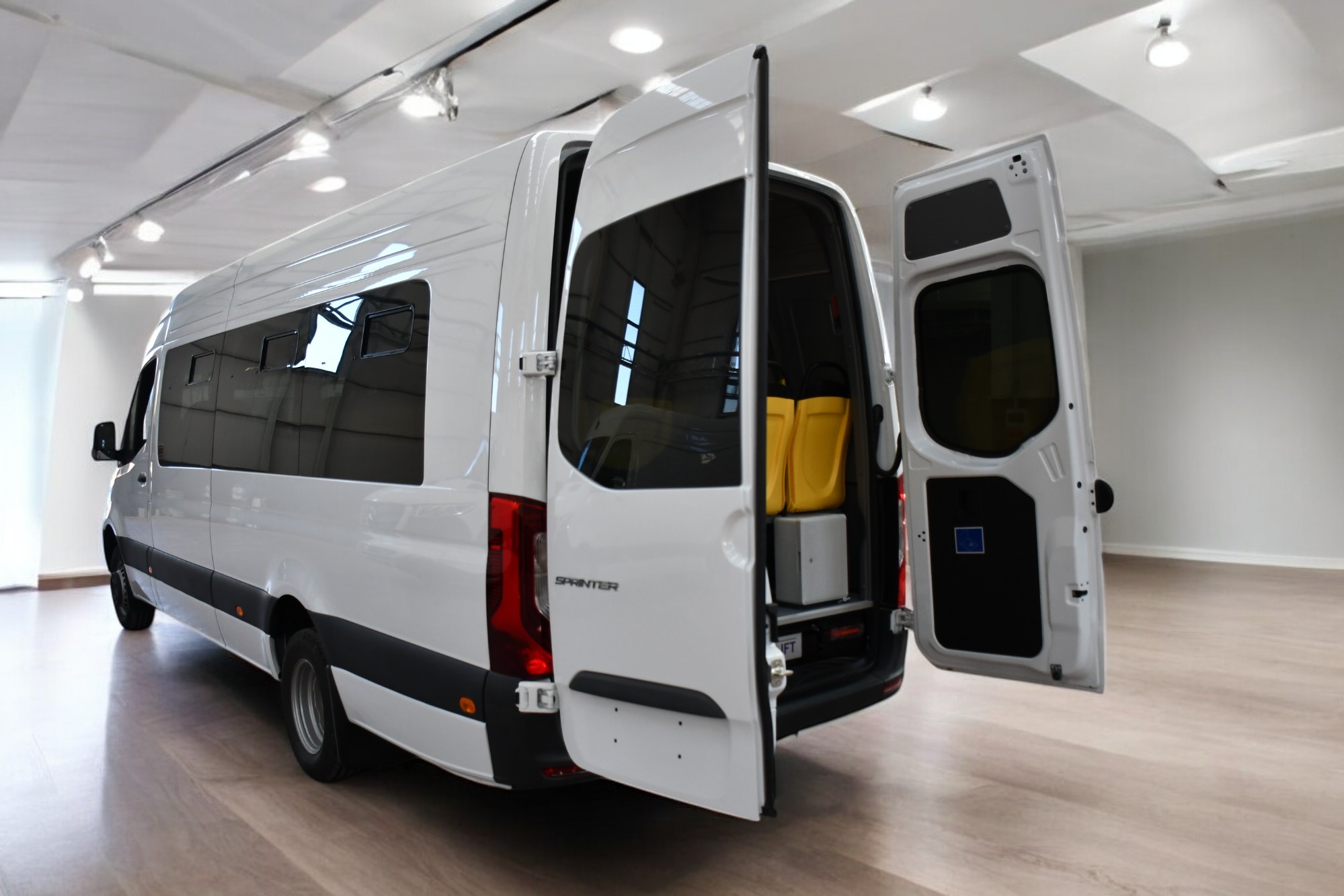 SCHOOL LAND XXL modelimiz Mercedes-Benz Sprinter aracının azami yüklü ağırlığı 5.5 ton olan ve standart olarak otomatik vitese sahip olup 170bg veya 190bg motor gücünde iki motor seçenekli araç üzerine tasarlıyoruz. Bu aracımızı inovasyoncu yaklaşımımızla ana sanayi kabul standartlarında yüksek kaliteli işçiliğimiz ile uzatıyoruz.